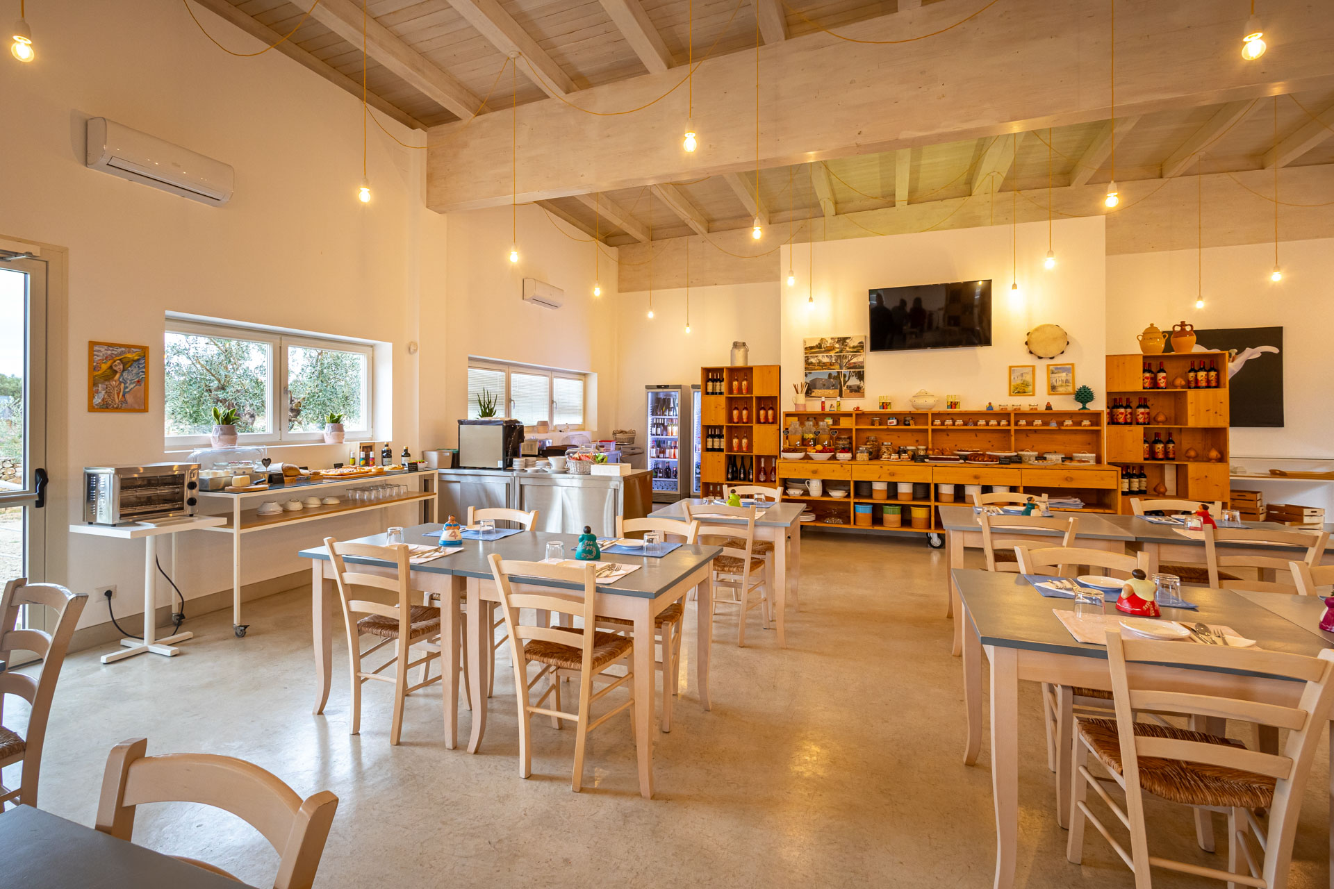 Una campagna viva circonda la struttura con ulivi giovani, frutteti e profumi che cambiano a ogni stagione.